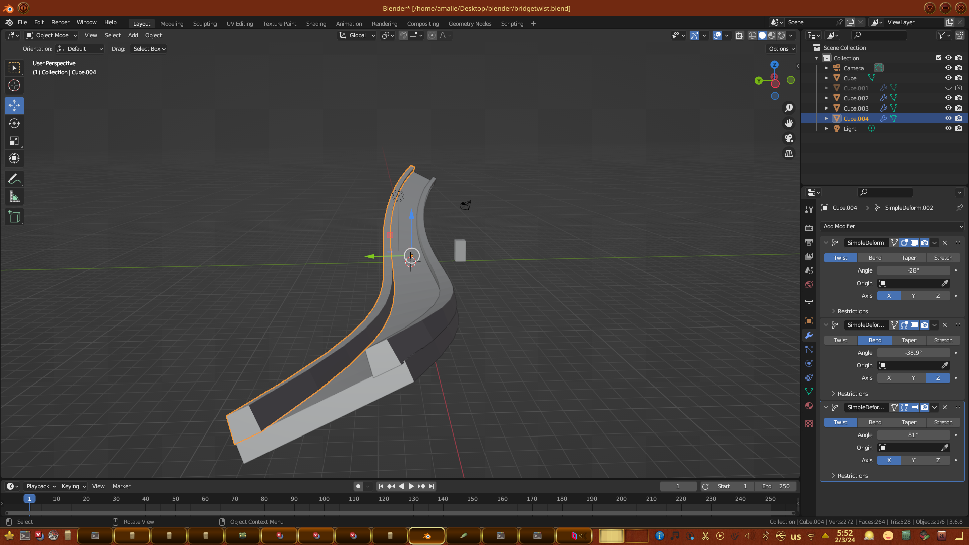 - Blend file: bridgetwist.blend